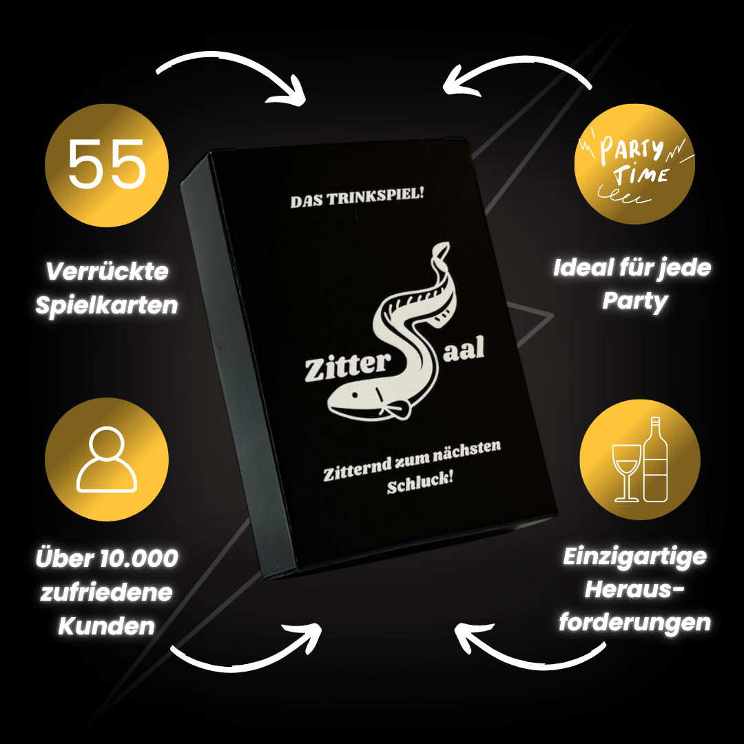Tauche ein in den Nervenkitzel mit Zitteraal – dem spannenden Trinkspiel für alle, die Mut , Geschick und Risikobereitschaft mitbringen! Perfekt für gesellige Abende und aufregende Partys , bei denen es richtig zur Sache geht.